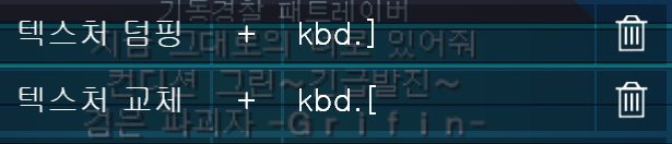 텍스처 덤핑 누르고 ] 키 (원하는 키를 등록하는 과정)