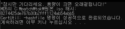 CertUtil -hashfile 원본.iso MD5